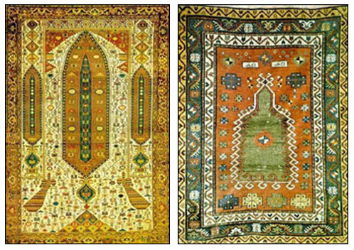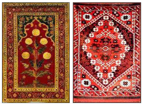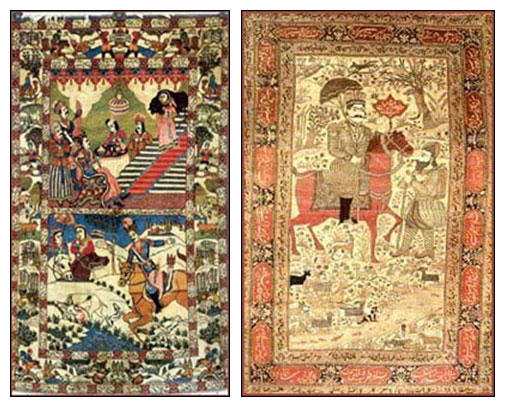 Na religião muçulmana não se faz a reprodução de figuras humanas e por isso os tapetes persas não trazem gravuras de reis, santos ou soldados. Entretanto, os tapetes mais antigos ainda - do período que antecede Maomé -, não receberam essa interferência e mostram figuras de pessoas em cenas que foram retratadas da mesma forma como os pintores ocidentais faziam nas telas. Os pintores foram os fotógrafos da antiguidade e o mesmo aconteceu com todas as espécies de arte. Como os reis não tinham fotógrafos, faziam-se cercar de pintores para registrar as suas ilustres vidas.